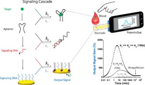 “Drawing inspiration from natural cell signaling cascades, chemists at Université de Montréal (UdeM) have developed a DNA-based signaling cascade that allows them to quantify and report via an easily measurable electrochemical signal the concentration of various molecules in a drop of blood, all within five minutes.”